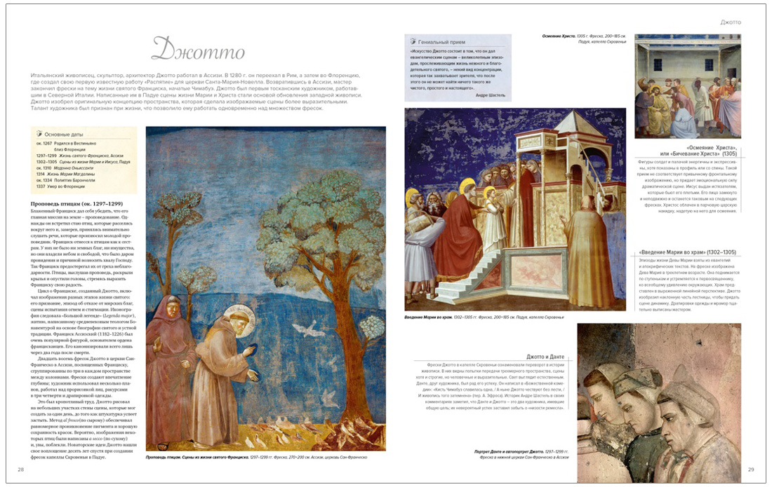 Книга поможет познакомиться с живописью, скульптурой и другими видами изобразительного искусства, охватывающими период  от шумерского искусства, датированного 40 000 годом до н.э., до современных инсталляций Аннет Мессаже, от скульптур Поликлета до поп-арта Энди Уорхола, от готики до авангарда.