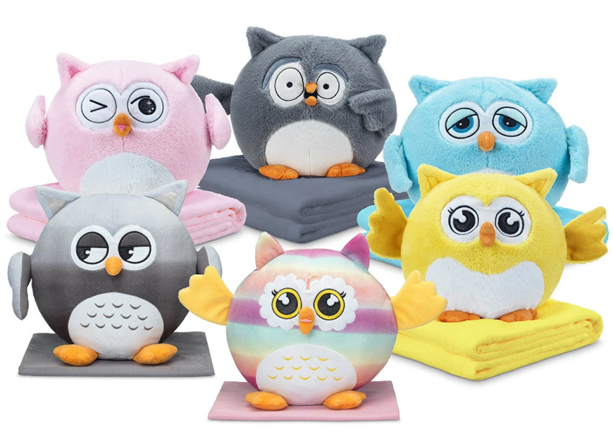 Плюшевая сова исполнена из экологичных и высококачественных материалов, не вызывает аллергии. Игрушка антистресс очень удобный и практичный аксессуар для сна. Ее можно использовать как декоративную подушка и практичный плед.