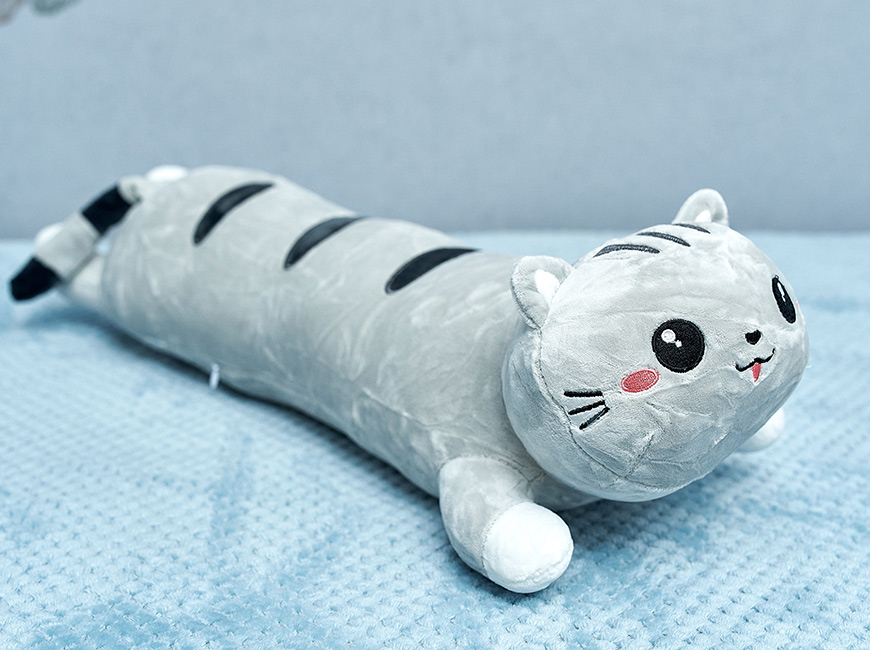 Кот Батон – великолепная игрушка в виде подушки. Она имеет разную длину, от 70 до 110 сантиметров. Батон давно покорил сердца детей и людей старшего возраста. Игрушку характеризует гипоаллергенный синтепух в качестве наполнителя, высшего сорта. Этот факт гарантирует безопасность использования.