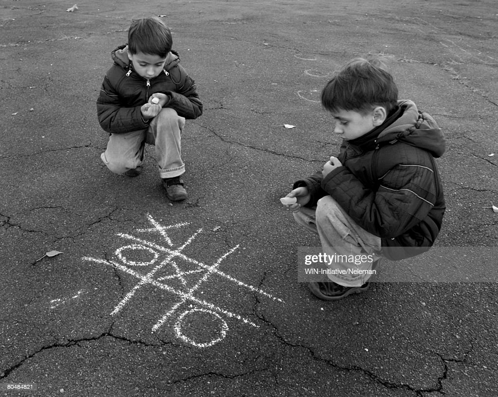 На улице в эту забаву можно играть так: роль крестиков и ноликов выполняют дети, которые становятся в клетки.