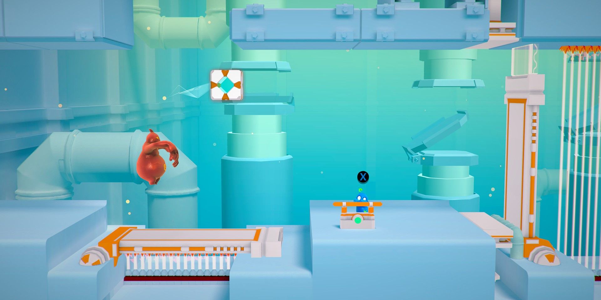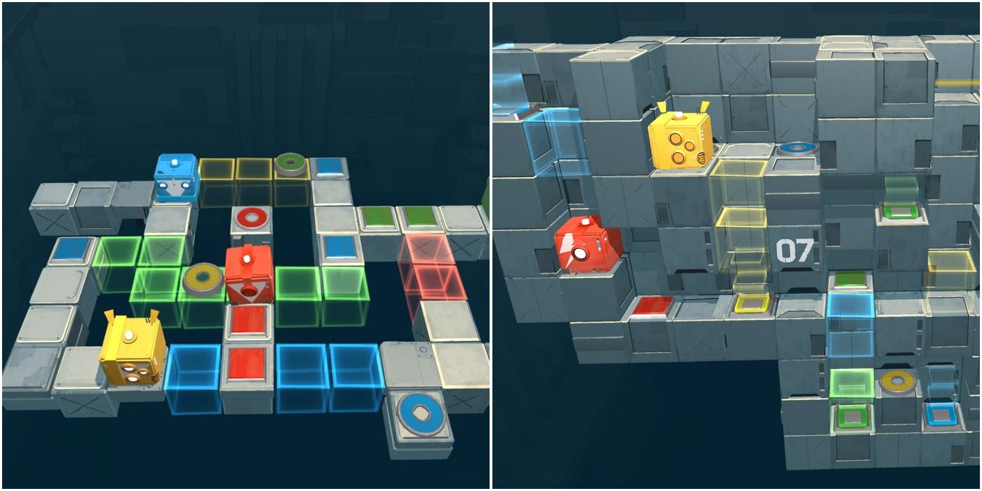 Two players will need to be precise and work in synchronicity to progress through the dozens of unique block mazes. This includes clearing obstacles and platforms by triggering contraptions and matching with switches of the same color.