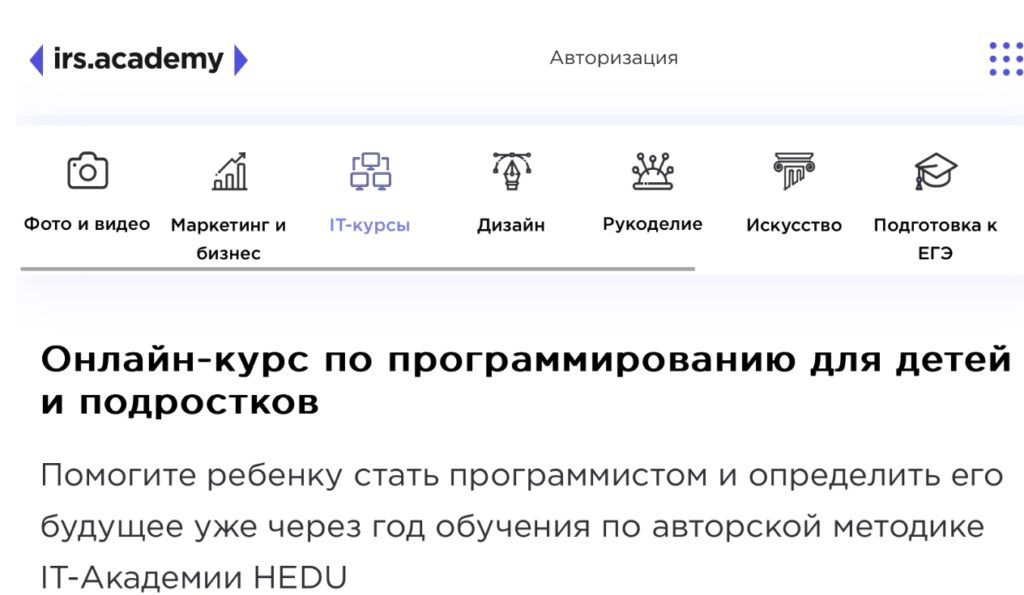 Онлайн-курс по программированию для детей и подростков от irs.academy
