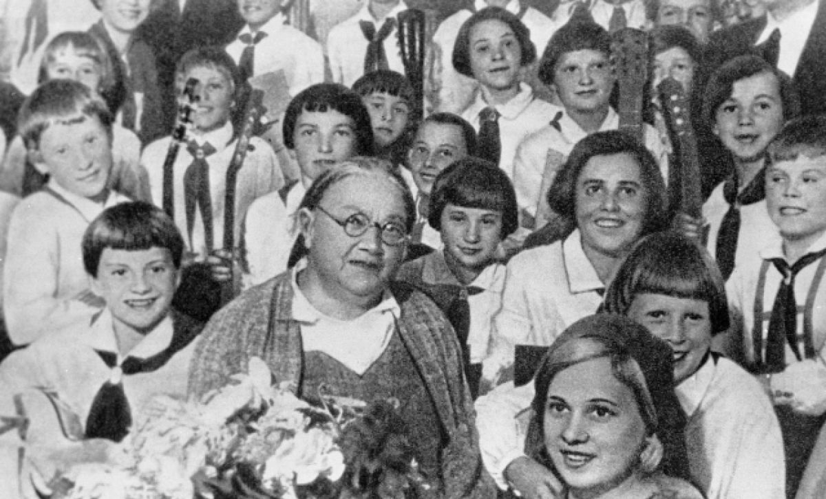 Крупская с пионерами. (Wikimedia Commons)
