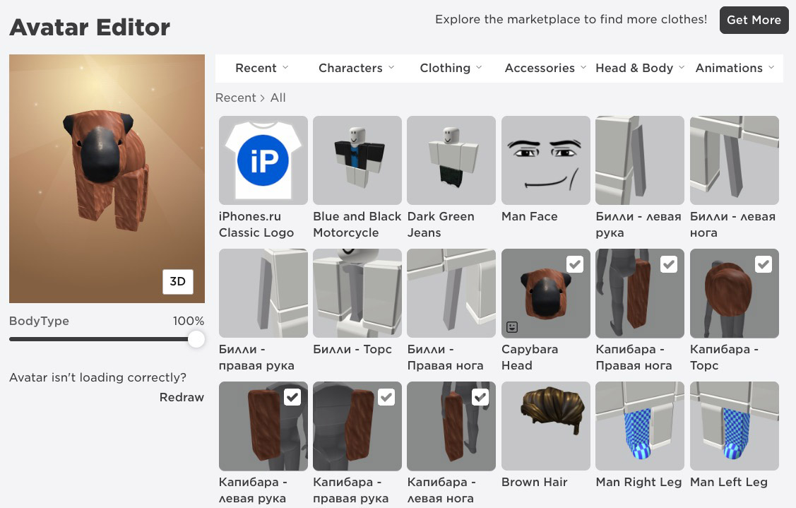 Да, я капибара в Roblox. И да, сделал футболку с нашим логотипом в режиме разработчика.