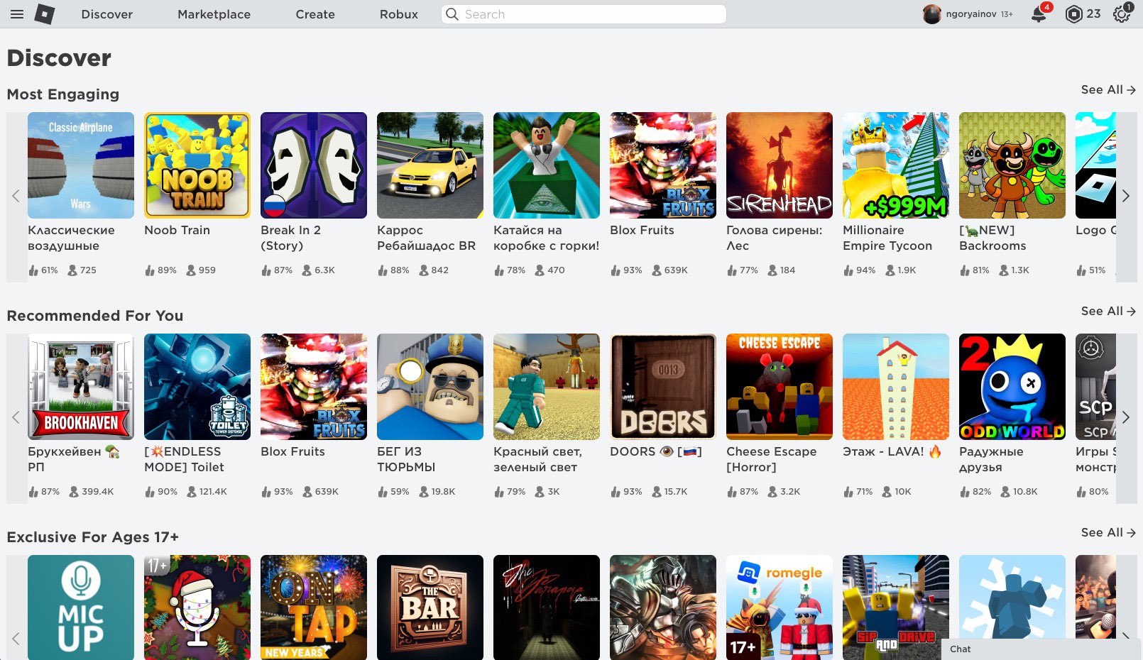 Браузер является домашней страницей Roblox. Это одновременно рекомендательный сервис, топ-чарт и редакторская подборка лучших игр, а точнее, «плейсов». Название убогое, но объясняется тем, что не всё тут является игрой в классическом понимании.