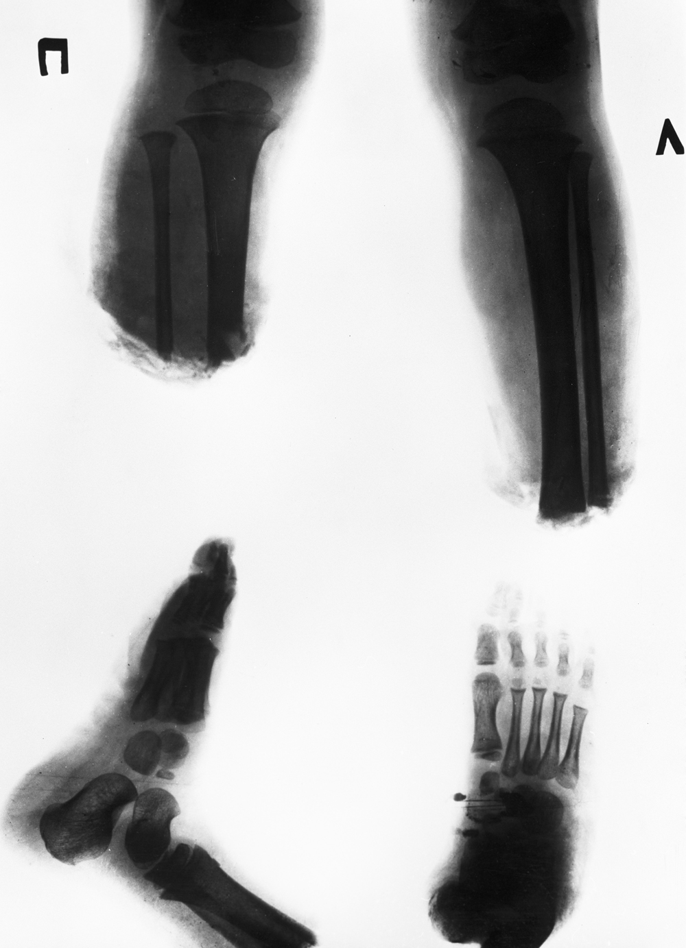 Рентгеновский снимок ног 3-летней литовской девочки Расы Прасцявичуте до операции по реплантации обеих стоп ног. Фото: РИА Новости/ Христофоров