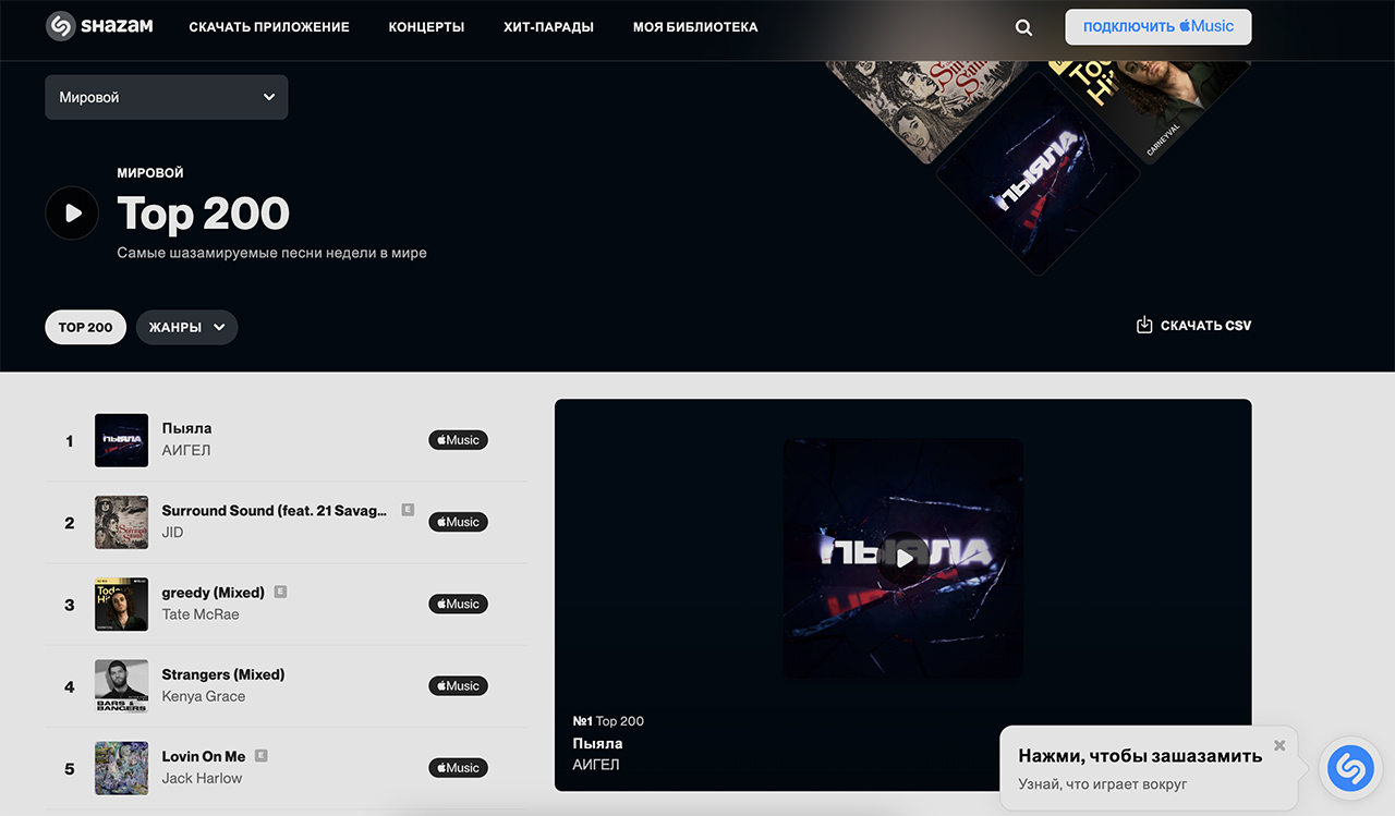 Вот такой незамысловатый текст, спетый на татарском языке, покоряет мировые чарты. Сегодня на очереди Shazam – там Пыяла на первом месте в мировом чарте.