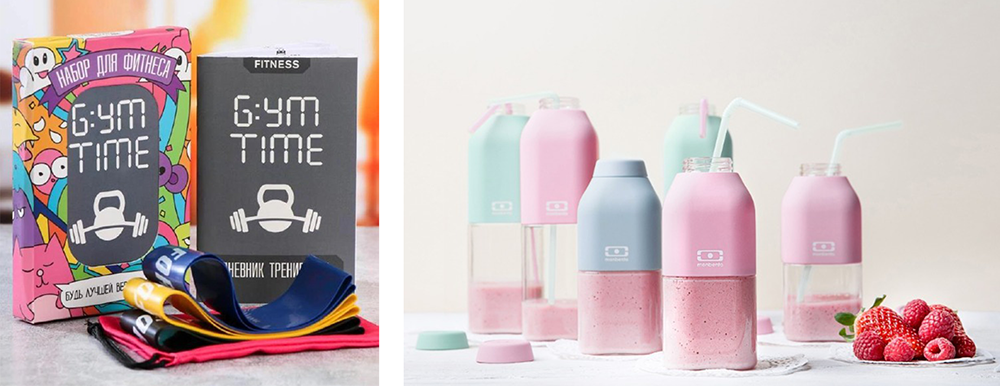 Как и экотренд, здоровый образ жизни уже давно лидирует как тема для подарков. Домашний фитнес был особенно актуален во время карантина, но он не сдает свои позиции до сих пор: многие компании остались на удаленке (из наших клиентов — Альфа-банк, «Якобс», Shell) или перешли на частичную занятость в офисе.