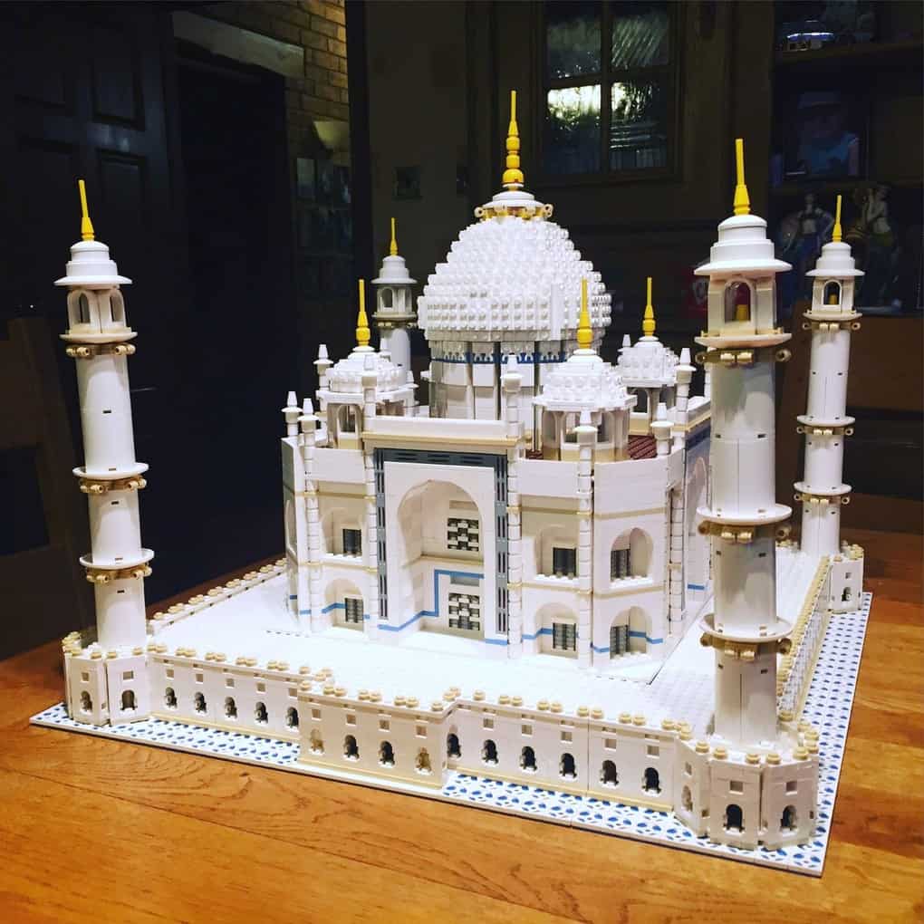 Наиболее большой набор «ЛЕГО» состоит из 5 900 элементов, и это знаменитый Тадж-Махал. Индийский храм составляет полтора метра в ширину и 40 см в высоту. Раньше этот комплект стоил около 300 долларов, но он уже давно не производится. В связи с этим комплекс сейчас стоит вплоть до нескольких тысяч долларов. Он считается редкой и ценной вещью.