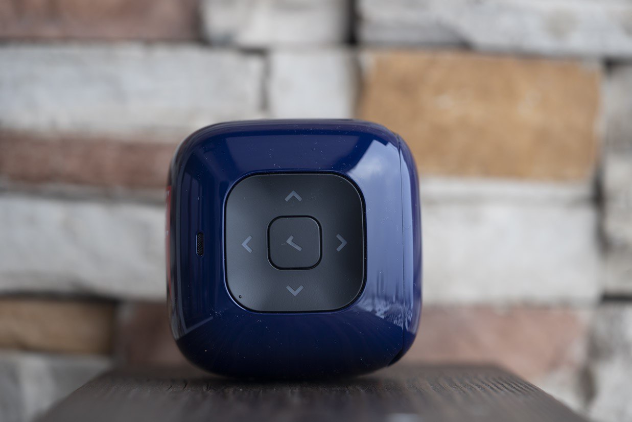 Кубик имеет три динамика с мощностью 2,5 Вт – два по бокам лицевой части корпуса и один на задней панели. Высокой громкости от него не ждите: озвучит салон автомобиля или спальню на 30-50 квадратов. Но можно подключить любую колонку с помощью Bluetooth – и маленький кубик превращается в полноценный кинотеатр у вас дома.