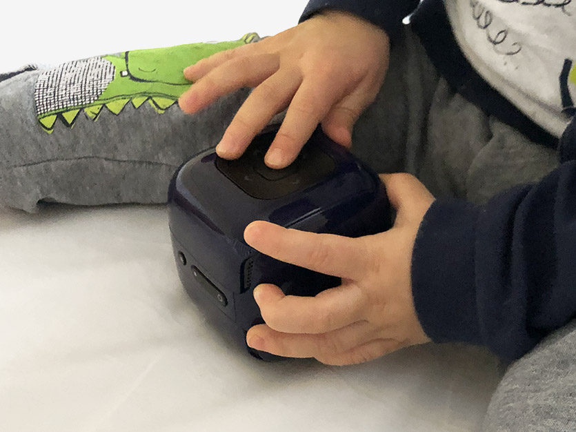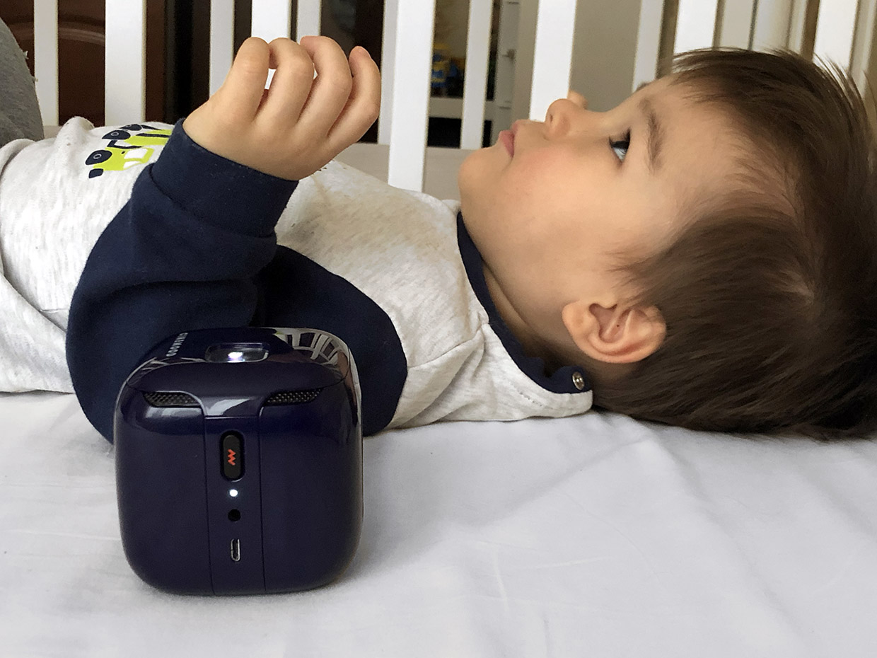 Дал сыну (1,8 лет) CINEMOOD, затем отошёл в сторону – посмотреть, что будет дальше. Спустя минуту он уже понял, что проектор надо держать в сторону стены. Через 10 минут даже пытался переключать разделы с мультиками, пару раз успешно.