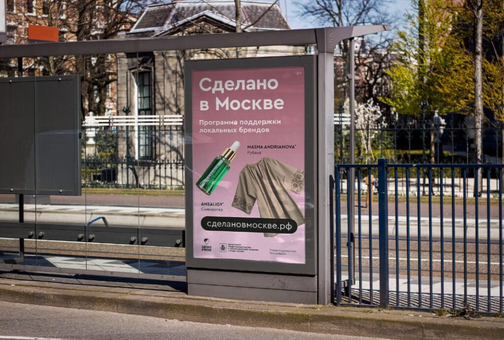 Правительство Москвы решило помогать городскому бизнесу — создали площадку для продаж и бесплатно рекламируют товары местных производителей и брендов. «СделановМоскве.рф» — онлайн-витрина о брендах и ресурс про столичную жизнь. Конечно, это не замена ушедшему глянцу, а скорее гламурные «Госуслуги», но вот наружная реклама площадки и правда многим попадалась, чаще всего ее размещали на билбордах столицы, остановках, метро и на Avito, маскируя под объявления продавцов. Наружная реклама выгодно смотрелась за счет своего минимализма и любопытных товаров — спокойный фон, вещь, адрес сайта.