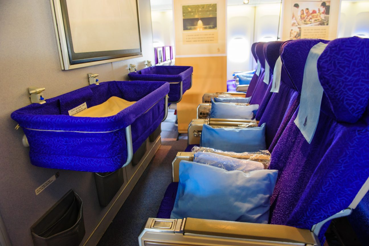 В Qatar Airways во всех самолётах есть люльки для детей. Они бесплатные и всегда в наличии. Получить их можно, если пассажир с младенцем сидит на рядах с перегородкой. Эти места нужно бронировать заранее. Если люльку поломают, платить не нужно.