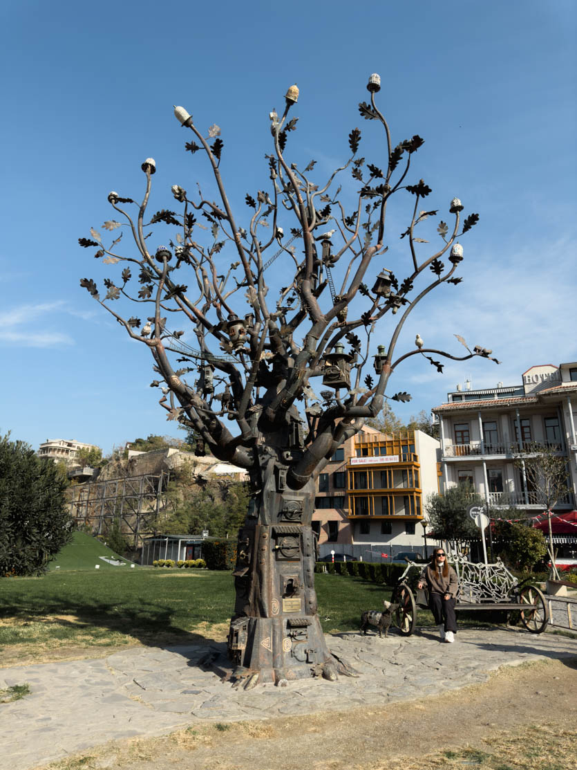 Мтацминда — это холм, который виден почти из любого места в Тбилиси, именно там расположена телебашня. Здесь есть красивый тематический парк с разнообразными достопримечательностями и лучшим видом на город. Вы можете сесть на автобус от площади Свободы или взять такси примерно за 5 долларов, но лучший вариант — воспользоваться канатной дорогой.