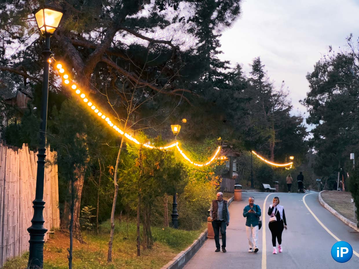 Зелени в парке немного, это открытое большое пространство. Здесь мало лестниц и ступеней, все спуски и подъемы сделаны в виде дорожек. Вечером у фонтанов включают подсветку и музыку, и гулять становится даже интереснее, чем днем.