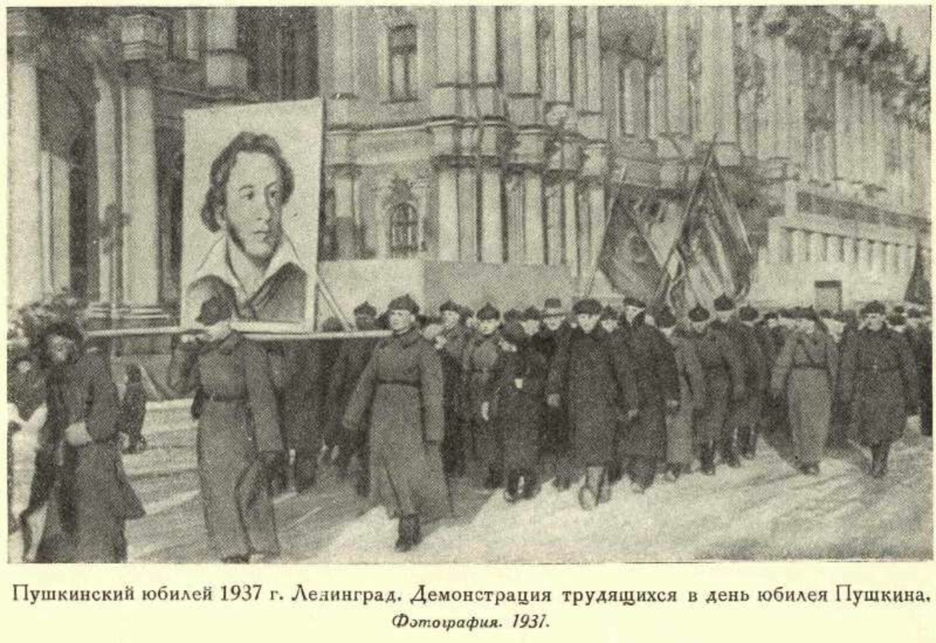 Демонстрация трудящихся в день юбилея Пушкина. Ленинград. 1937 г.