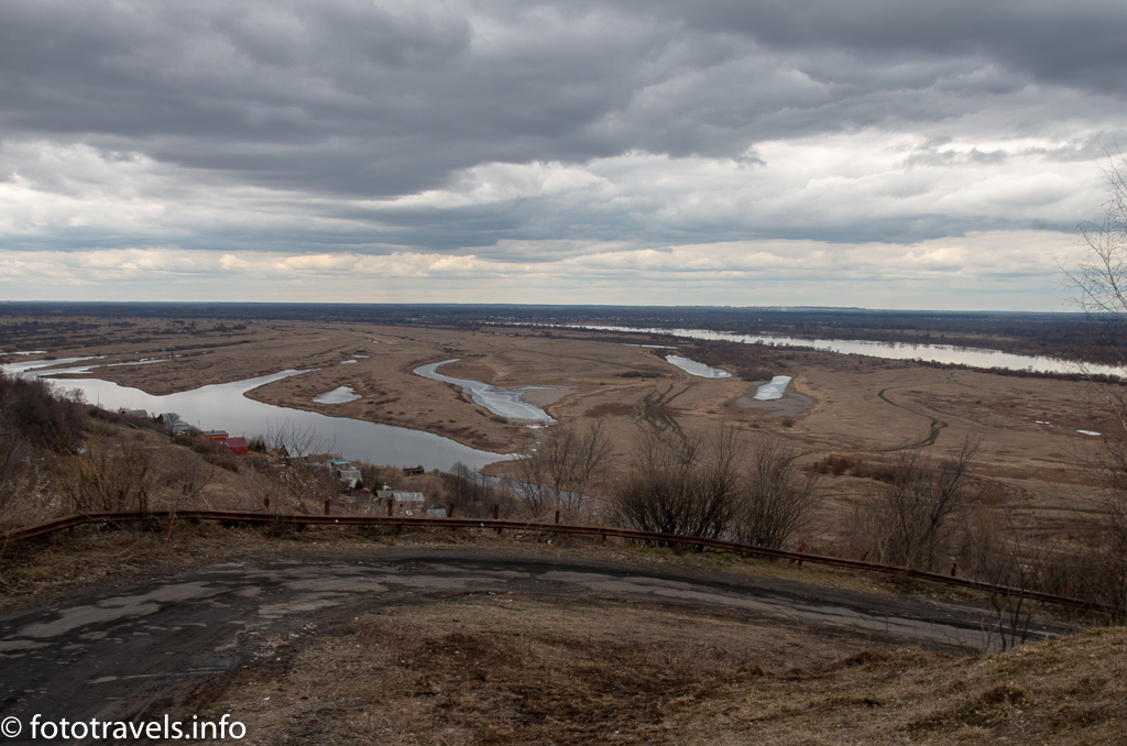 Переезжаем мост и оказываемся уже в Нижегородской области и движемся по трассе P125. Не доезжая примерно 60 км. до Нижнего Новгорода сворачиваем на Горбатов. Ничего особенного или примечательного в этом городе нет, кроме того, что это самый маленький городок области, здесь проживает чуть более 2 тысяч человек. Туристический же интерес это место вызывает вовсе не статистические показатели численности населения, а пейзажи, которые открываются с высокого берега Оки.