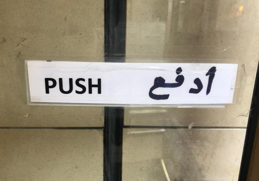 Надо хорошо знать, кто твои клиенты. Надпись «толкать» продублирована на английском и арабском, потому что среди мигрантов много арабов. Фото из The Sanctuary