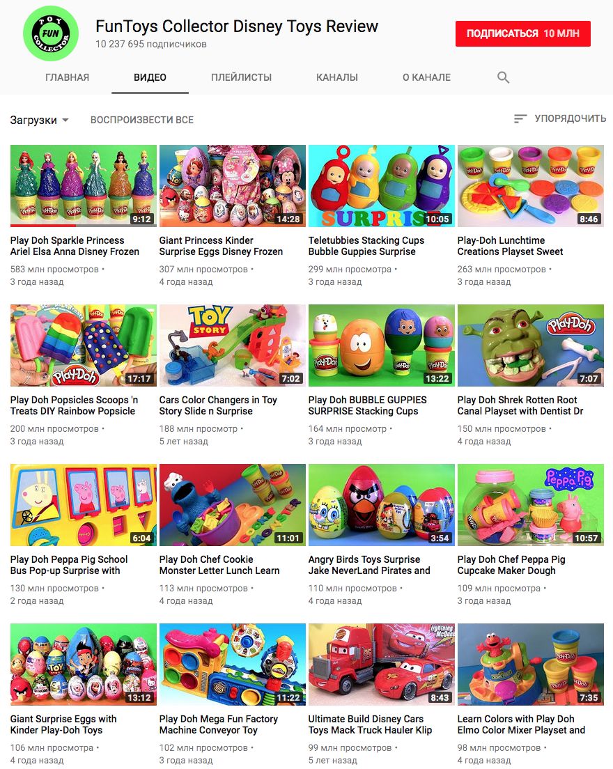 У этого видео на картинке выше почти 600 млн просмотров. Там просто показано как из пластилина сделать платье для кукол. Это даже не новый клип Бионсе (у него всего 28 млн просмотров). Давайте я еще раз скажу: пятьсот восемьдесят три миллиона просмотров видео про пластилин.