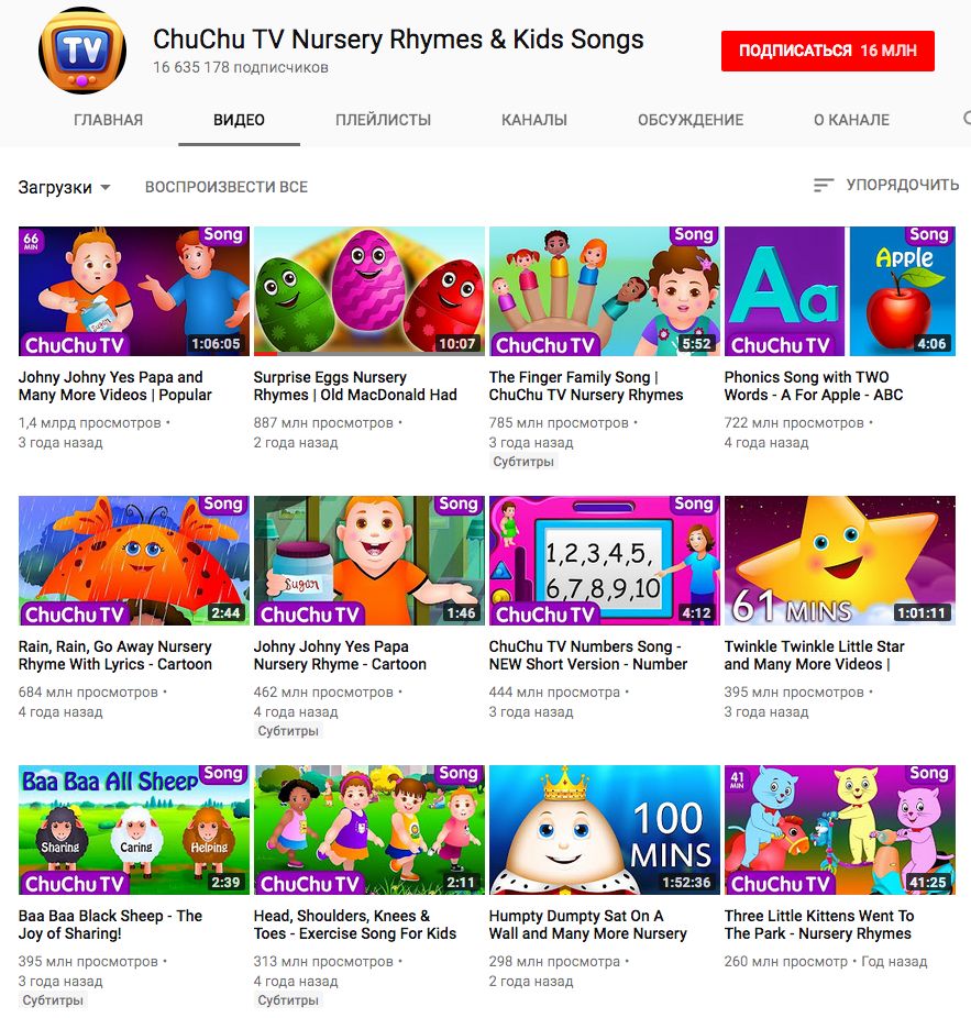 Типичный канал для детей