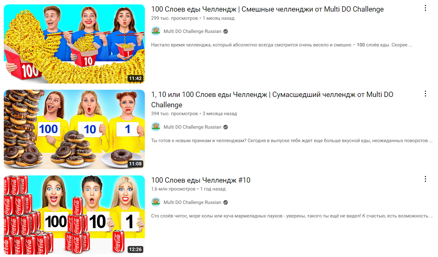 Челленджи очень популярны среди детей. Ярким примером могут служить MrBeast, Влад А4 и подобные блогеры. Одна из самых популярных тем в челленджах — вкусная и любимая еда.