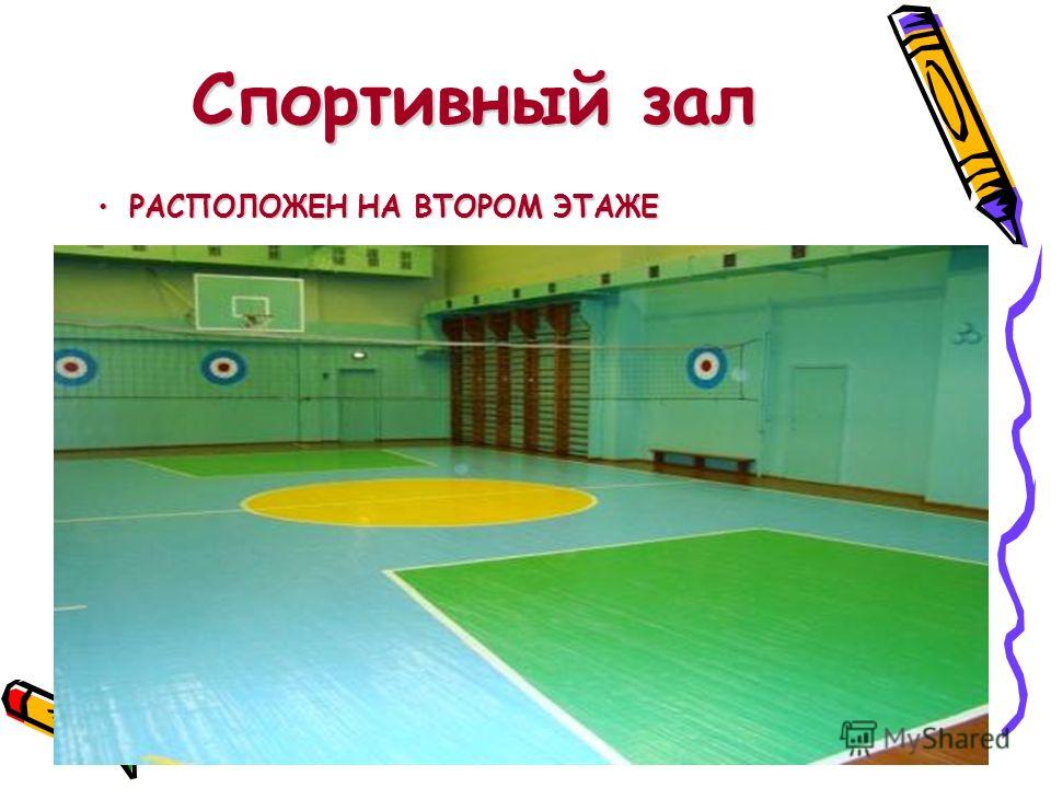 РАСПОЛОЖЕН НА ВТОРОМ ЭТАЖЕРАСПОЛОЖЕН НА ВТОРОМ ЭТАЖЕ Спортивный зал