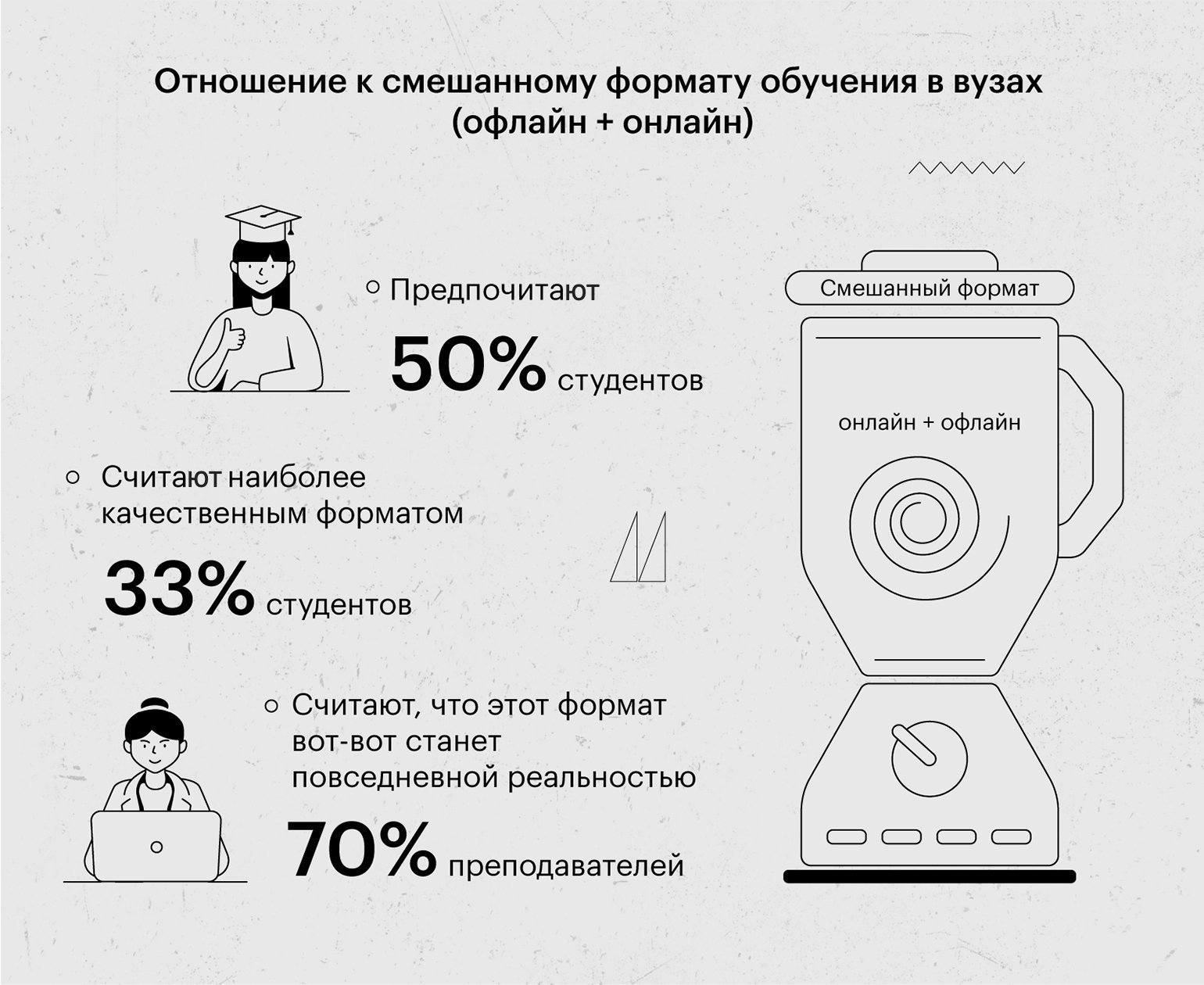 Опрос об отношении к смешанному формату российских студентов и преподавателей провело и российское Минобрнауки. В прошлом году респонденты оценили цифровые подходы к обучению выше, чем в 2020-м.