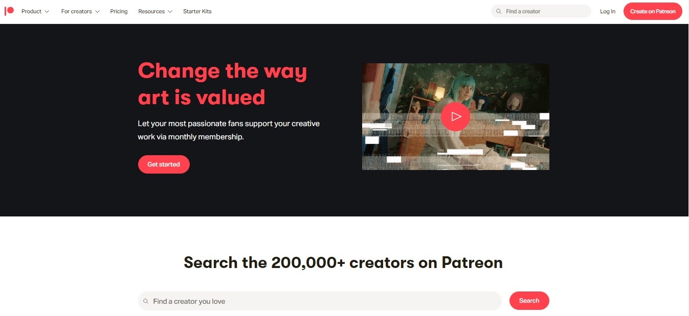 Главная страница Patreon
