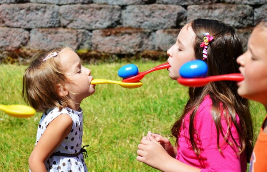 В этой игре развивается координация рук и глаз. Детям дают ложку с вареным (пластиковым) яйцом. Затем просят их стать в круг, взять ложки в зубы и передать без помощи рук друг другу яйцо. Проиграет тот, кто уронит свое яйцо на землю.