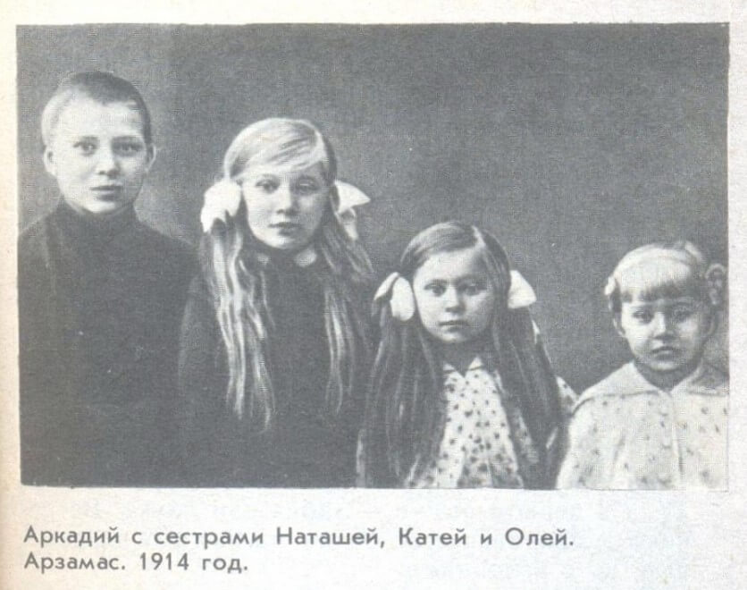 После него у родителей родились еще три дочери: Наталья, Екатерина и Ольга. По воспоминаниям семьи, Аркадий всегда ладил с сестрами, с самого маленького возраста выступал их защитником, никто не помнит, чтобы он зря кого-то обижал или капризничал по пустякам.