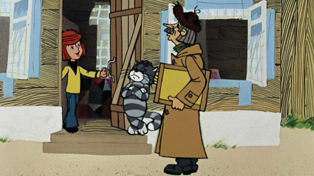 Протяженные произведения искусства хороши не только тем, что дают возможность расти и развиваться бок о бок с любимыми героями в течение всей жизни. Вбирая в себя приметы эпох, франшизы становятся своеобразными учебниками истории. В США это «вечные» «Симпсоны», стартовавшие во времена холодной войны (одних президентов на их «желтом» веку сменилось больше пяти штук), а у нас — книжно-анимационная деревня Простоквашино, которая в своем условно-сказочном варианте возникла при Брежневе, испытала социально-политический ренессанс при Ельцине и в формате мультсериала продолжает существовать до сих пор. Первые, наиболее известные сюжеты о дяде Федоре — книга «Дядя Федор, пес и кот» (1974), снятые по ее мотивам мультфильмы, а также самостоятельный сценарий «Зима в Простоквашино» (1984), позже переработанный Эдуардом Успенским в повесть, — развиваются в иномирье: герои явно не представляют себе, что такое жизнь вне деревни.