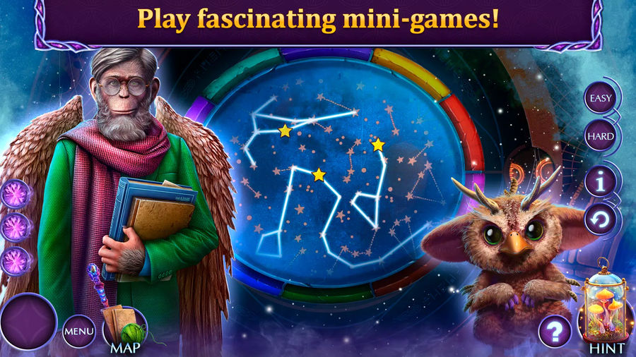 В этом прохождении не указывается, когда именно нужно приблизить локацию. Скриншоты показывают каждую приближенную сцену. Головоломки с поиском предметов обозначаются как СПП. В этом прохождении решение СПП не прописано. Показывается только местоположение СПП и получаемый предмет. Выберите режим игры «3 в ряд», если не хотите проходить СПП. Используйте Карту, чтобы быстро перемещаться между локациями.