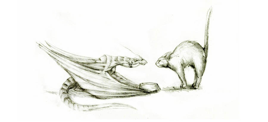 Маленький, ультрамариновый, с алыми крыльями и кончиком хвоста, дракон шипел и бился у меня в лапах. Я сразу поняла, что это он. Хозяин показывал мне картинки драконов, он просто бредил ими. И сейчас я держала дракона в своих лапах, смотрела на него и думала.