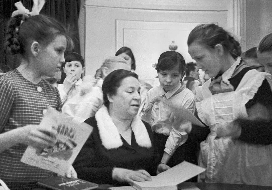 В 1947 уже после победы Советского государства и союзников, Агния Барто берется за помощь сиротам, детям войны. Она ездит по приютам, где читает свои стихи, привозит подарки.